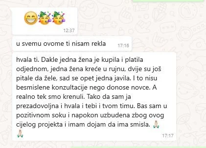 “ Naučila sam tko sam ja i moj biznis u mom svijetu, tko su moji kupci i gdje se nalaze. Konačno je moja priča dobila jasan izgled na društvenim mrežama.